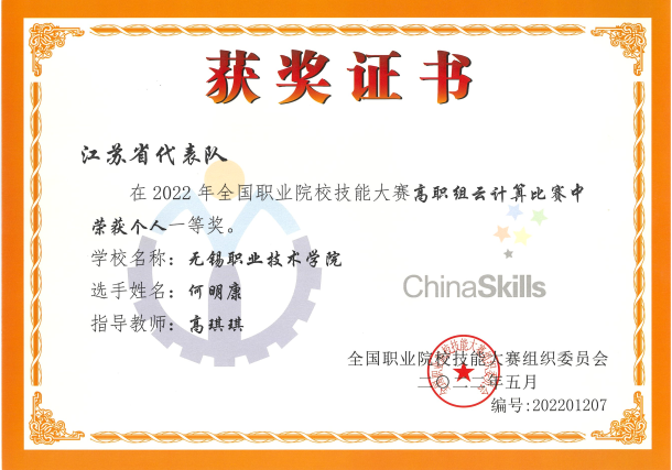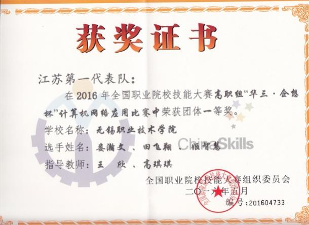 | 2021年 | 江苏省高等职业教育高水平专业群物联网应用技术专业群骨干专业 |