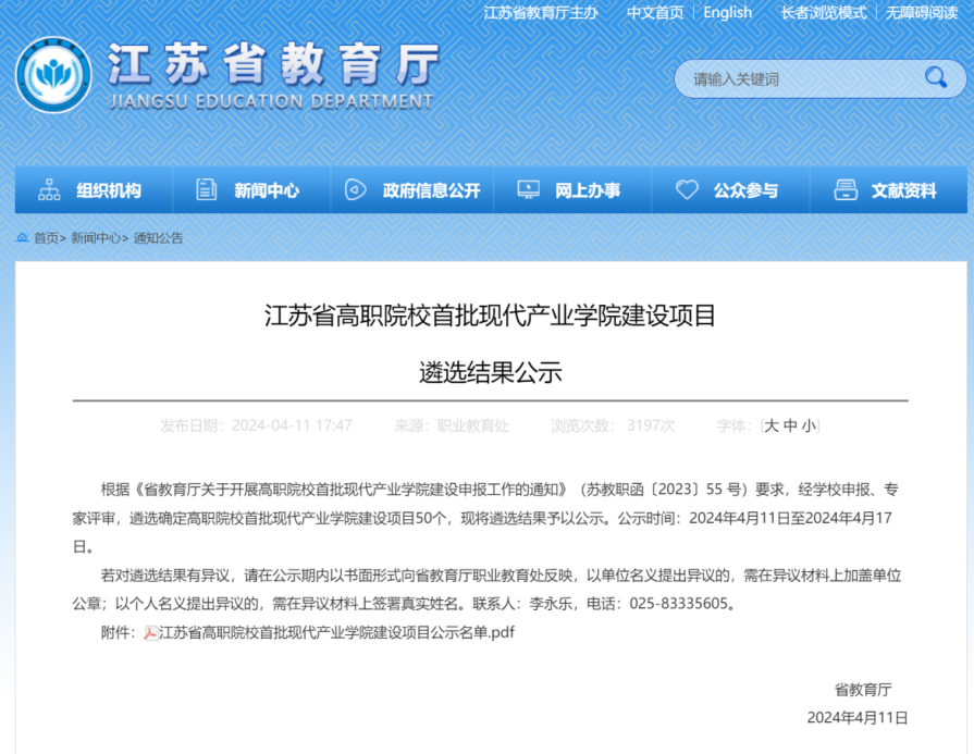 江苏省首批现代产业学院——工业互联网现代产业学院