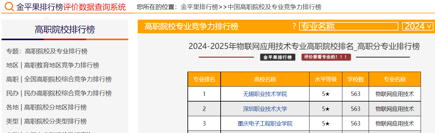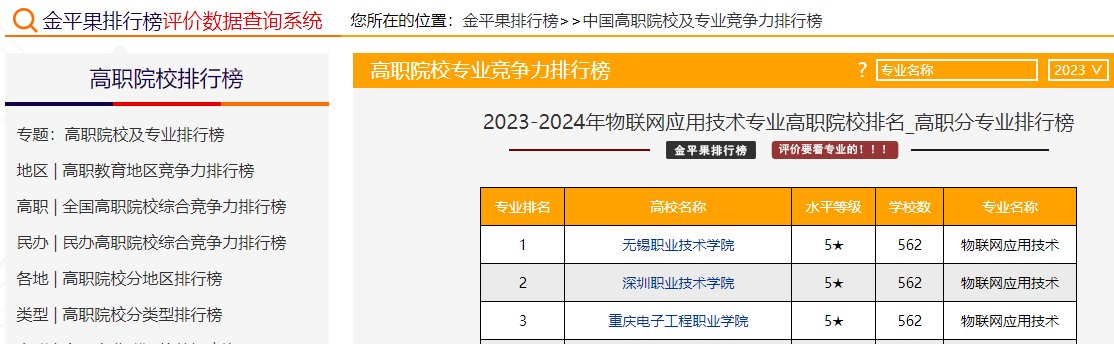 近3年物联网应用技术专业“金平果”排行榜第1名