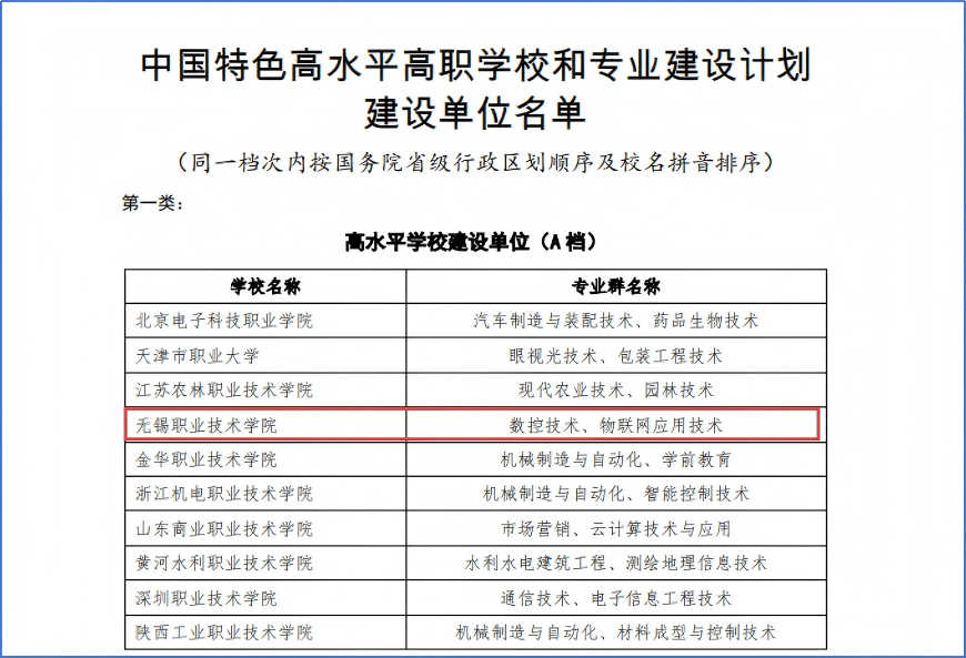 物联网应用技术专业获中国特色高水平学校(A档)专业群核心专业