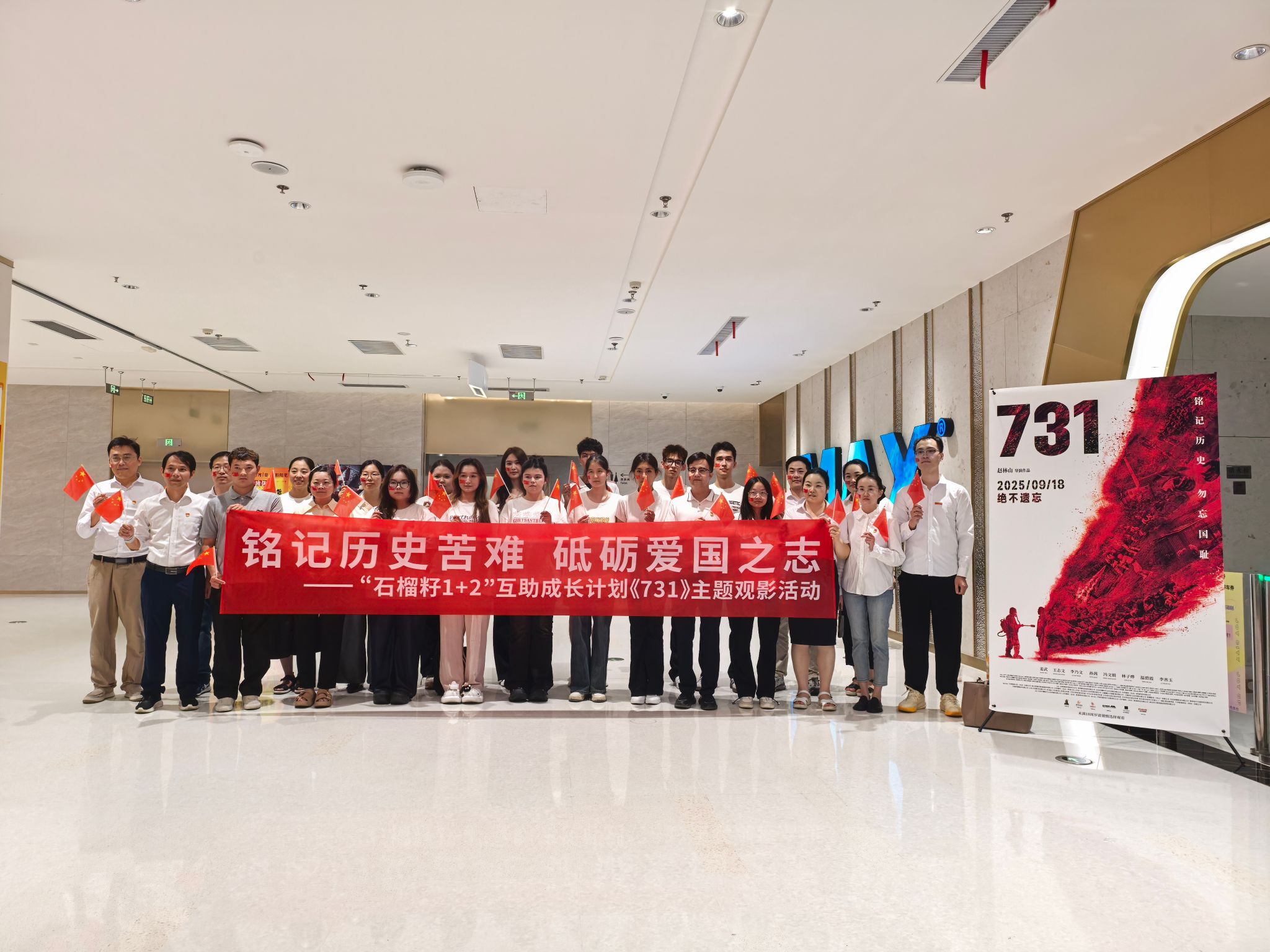 为铸牢中华民族共同体意识,激励青年学生铭记历史、珍爱和平,9月23日晚,物联网工程学院通过组织“石榴籽1+2”互助成长计划结对师生观看爱国主义影片《731》,开展了一次深刻的爱国主义教育活动。