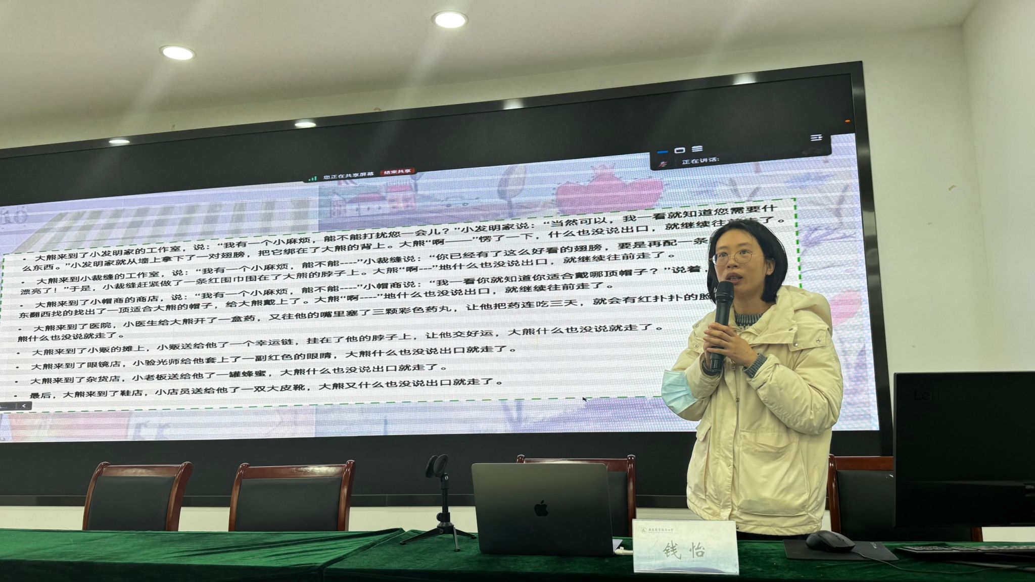 培训围绕“心理委员的职责与边界”这一主题展开。钱怡老师首先借助绘本故事《大熊的小麻烦》引出倾听与理解在人际支持中的重要性,生动阐述了心理委员作为“倾听支持者”的核心角色。她强调,心理委员并非替代专业心理咨询,而应在同学需要时做到“愿意听、听得懂、会回应”,成为身边同学可信赖的陪伴者。