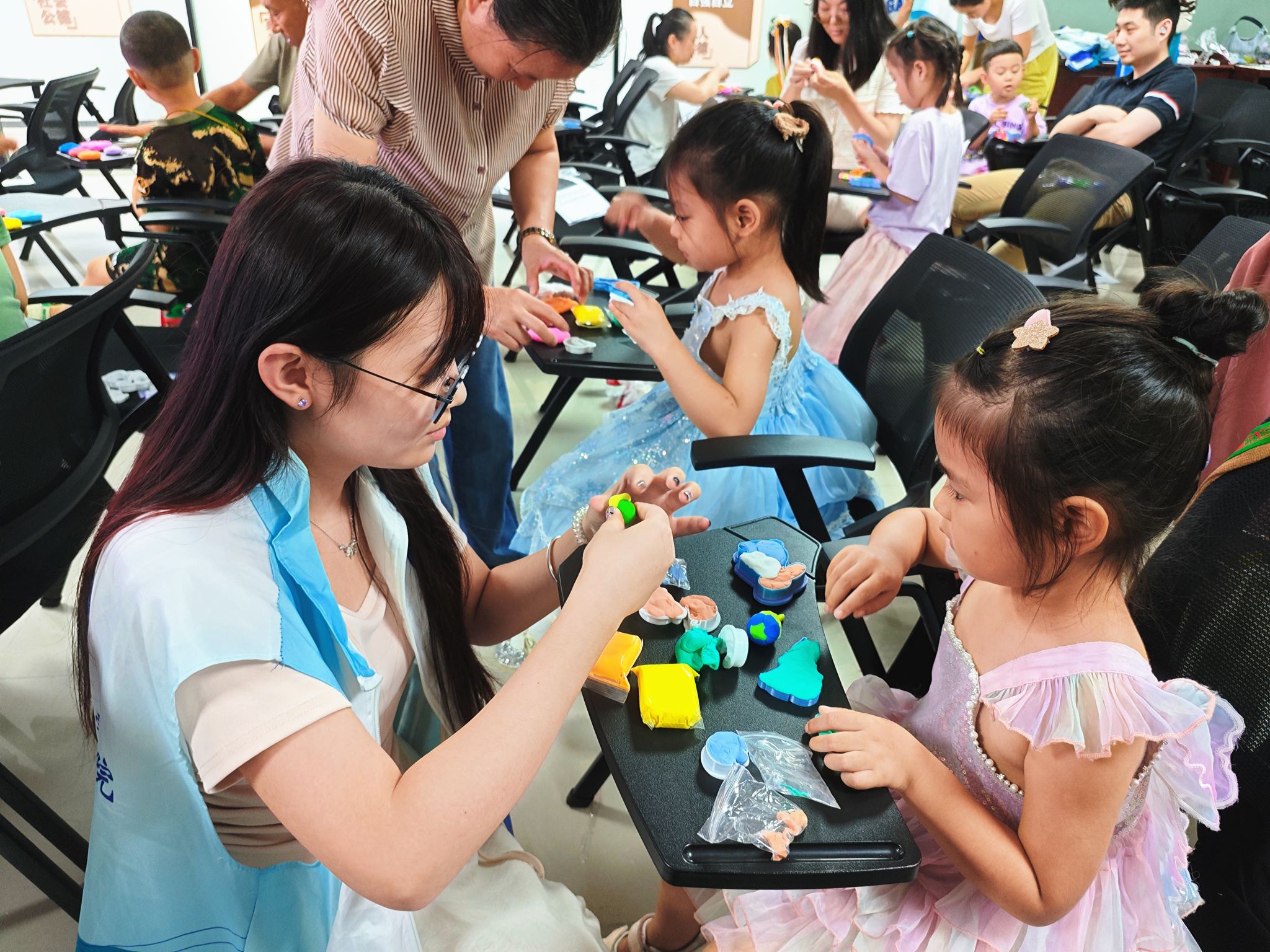 活动在温馨融洽的氛围中拉开帷幕。主持人围绕中秋团圆主题,生动讲解中秋传统习俗。来自新疆的同学也分享了古尔邦节、肉孜节等民族节日的文化内涵,展现不同节日背后共通的“团圆”主题,增进了大家对多元文化的理解与认同。现场,志愿者们展示了3D打印技术,为小朋友们播放科普动画并演示月饼模具的打印过程。随后,孩子们在家长的陪伴下,兴致勃勃地使用打印好的模具和超轻黏土亲手制作“月饼”与“月兔”,在动手实践中体验科技与传统文化交融的乐趣。