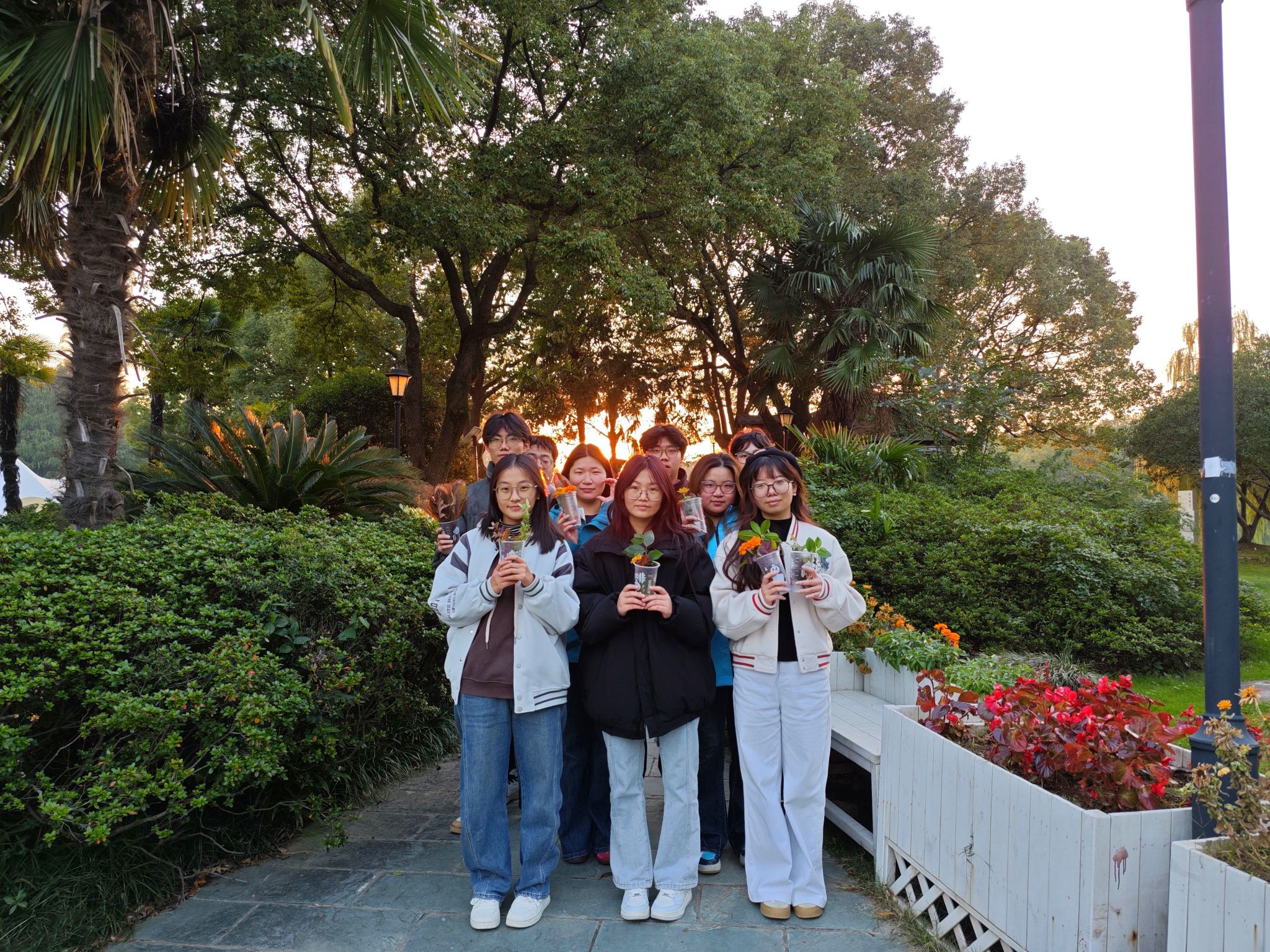 随后,活动进入“拾秋”自然实践环节。各小组沿生态园步道漫步,收集落叶、松果等自然素材,结合创意进行手工创作。同学们在亲近自然的过程中提升审美素养,激发创新思维,实现了美育与劳育的有机融合。