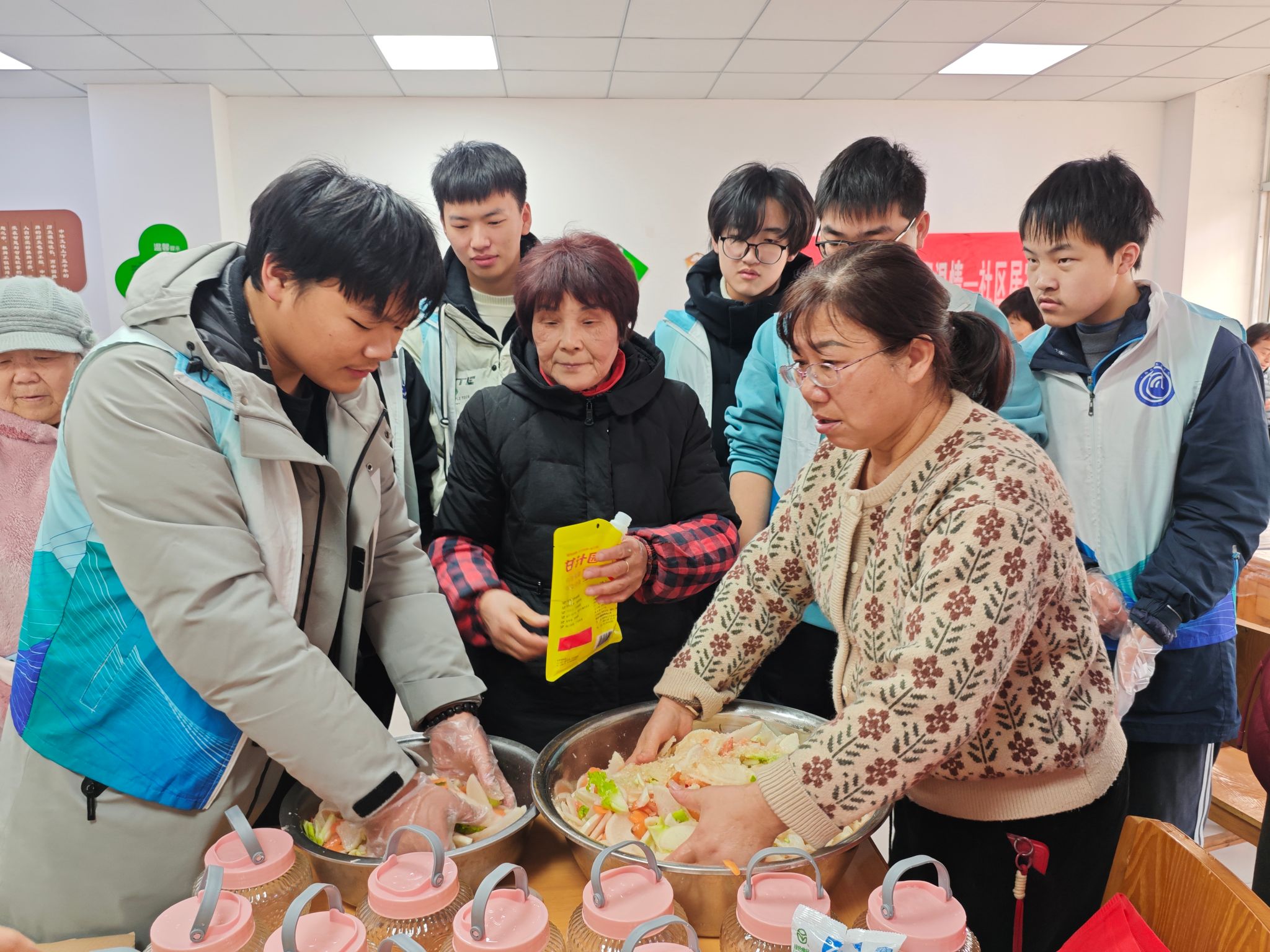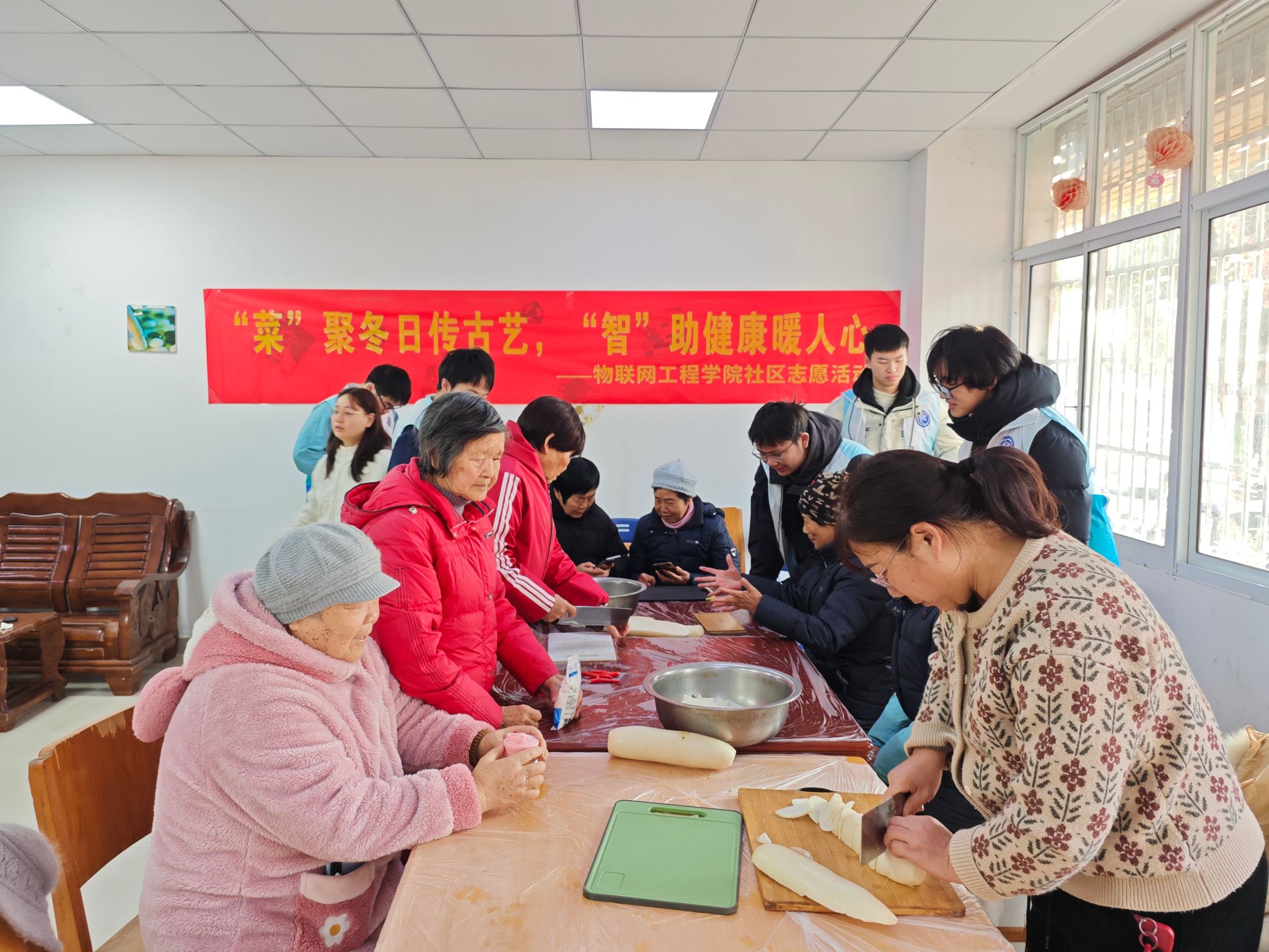 为弘扬传统民俗文化,促进师生与社区间的互动交流,深化“一站式”学生社区建设内涵,1月8日,物联网工程学院组织师生志愿者前往滨湖居家养老服务中心,开展“腌续冬日,菜聚温情”传统美食腌制志愿服务活动,与社区老人及工作人员共同体验了一场融合温情与趣味的冬日文化实践。