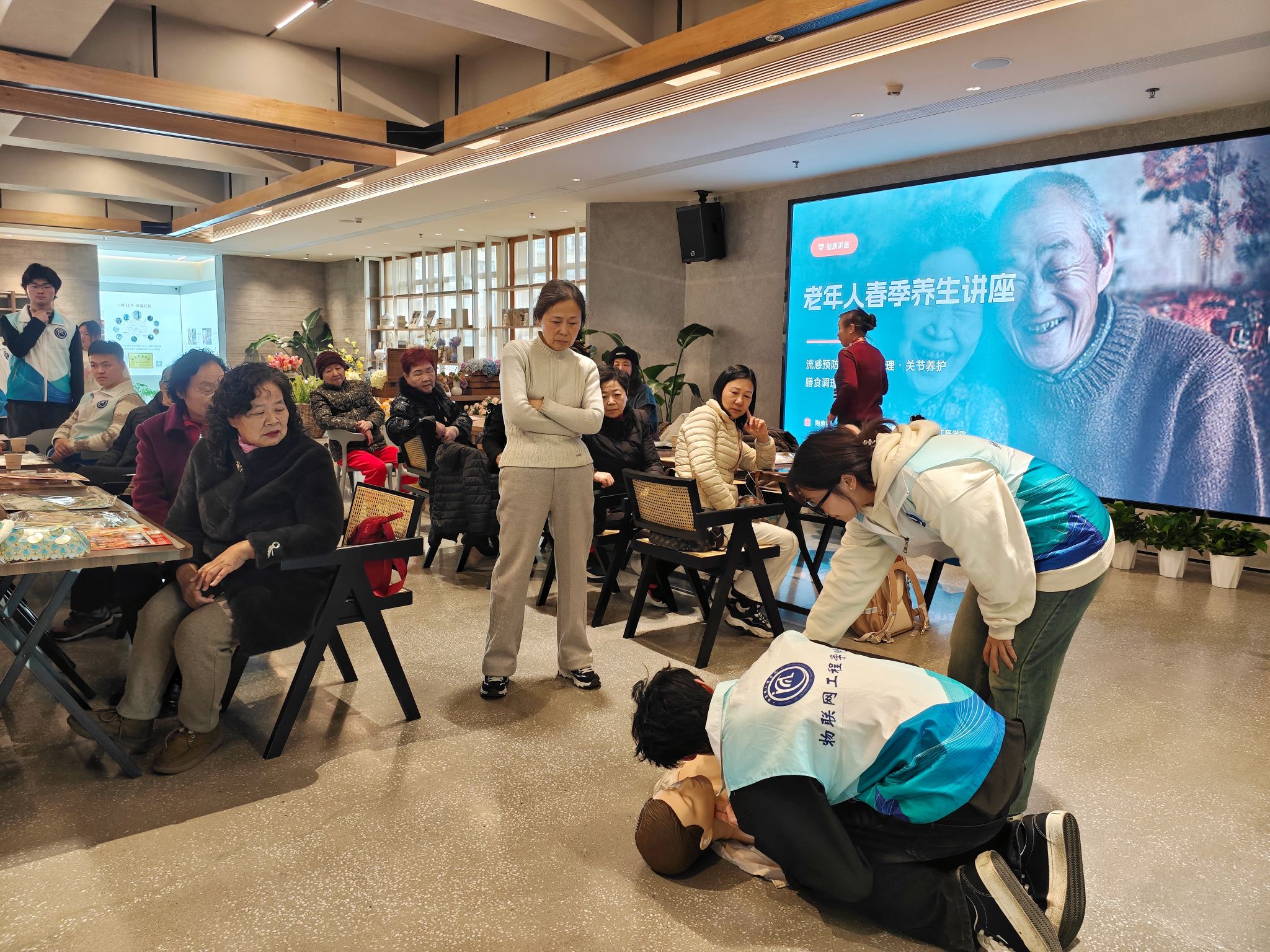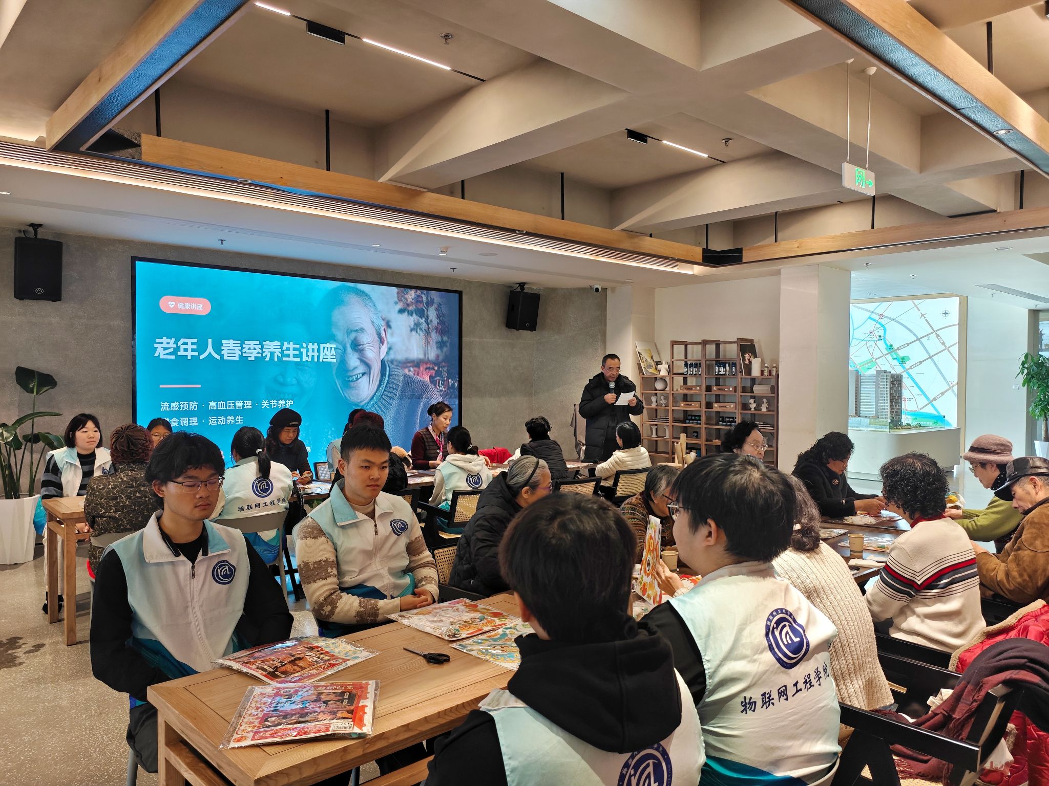 为弘扬雷锋精神与志愿精神,传承中华优秀传统文化、关爱老年群体健康,3月4日下午,物联网工程学院“职此青绿”志愿者协会联合校红十字志愿者、社区工作人员,在耘林生命公寓展示中心开展“灯映祥瑞 智护安康”学雷锋主题志愿活动。活动通过非遗手作、急救科普、健康宣讲等形式,为社区老人送去春日温暖,传递青春正能量。